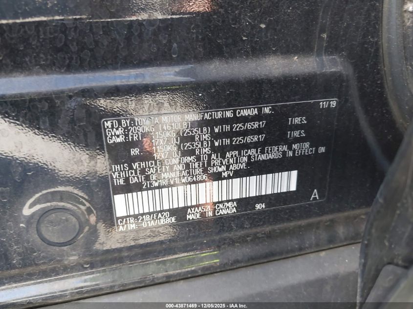 2020 TOYOTA RAV4 2020 року Бензин, 2.5, Передний привод, vin - 2T3W1RFV1LW064806 из США
