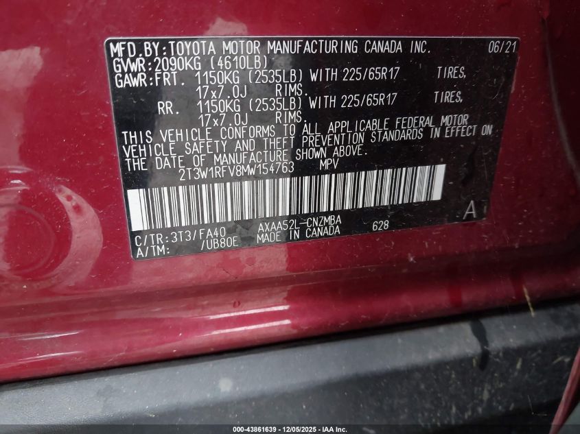 2021 TOYOTA RAV4 2021 року Бензин, 2.5, Передний привод, vin - 2T3W1RFV8MW154763 из США