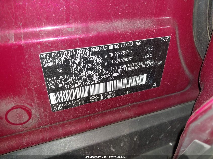 2023 TOYOTA RAV4 2023 року Бензин, 2.5, Передний привод, vin - 2T3W1RFV7PW254812 из США