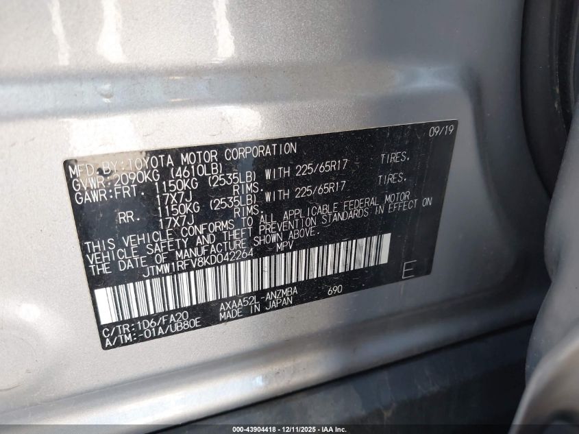 2019 TOYOTA RAV4 2019 року Бензин, 2.5, Передний привод, vin - JTMW1RFV8KD042264 из США