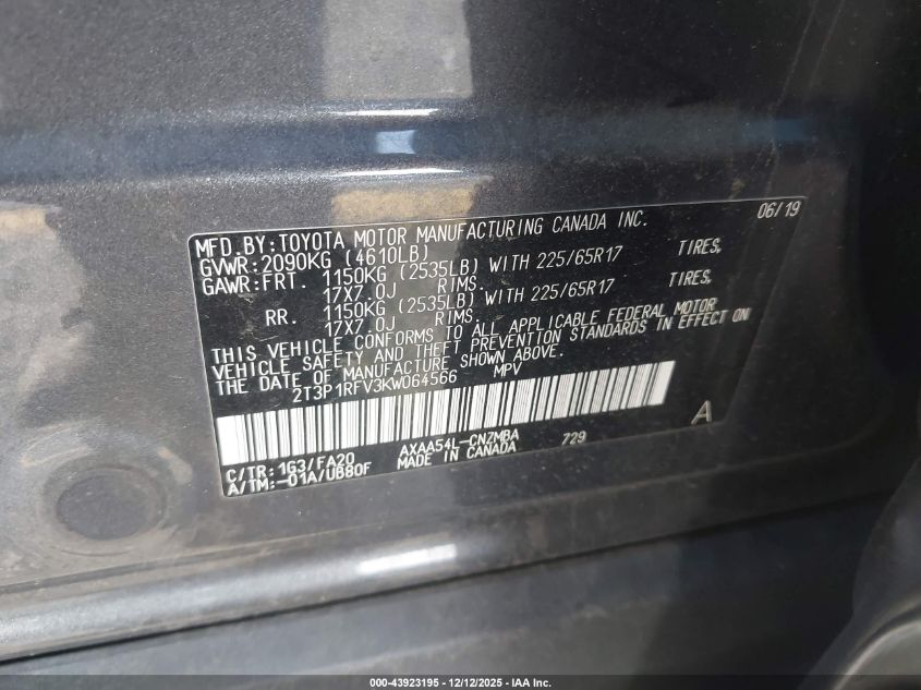 2019 TOYOTA RAV4 2019 року Бензин, 2.5, Полный привод, vin - 2T3P1RFV3KW064566 из США