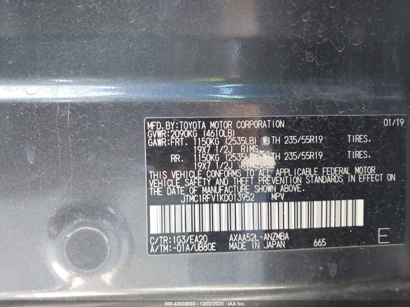 2019 TOYOTA RAV4 2019 року Бензин, 2.5, Передний привод, vin - JTMC1RFV1KD013952 из США