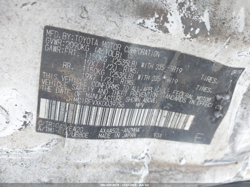 2019 TOYOTA RAV4 2019 року Бензин, 2.5, Передний привод, vin - JTMC1RFVXKD039756 из США