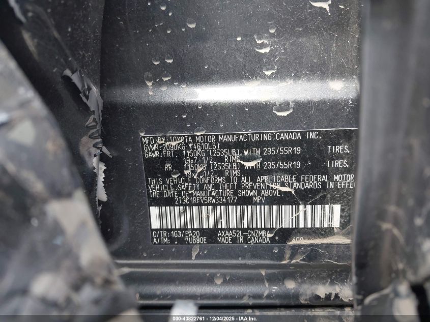 2024 TOYOTA RAV4 2024 року Бензин, 2.5, Передний привод, vin - 2T3C1RFV5RW334177 из США