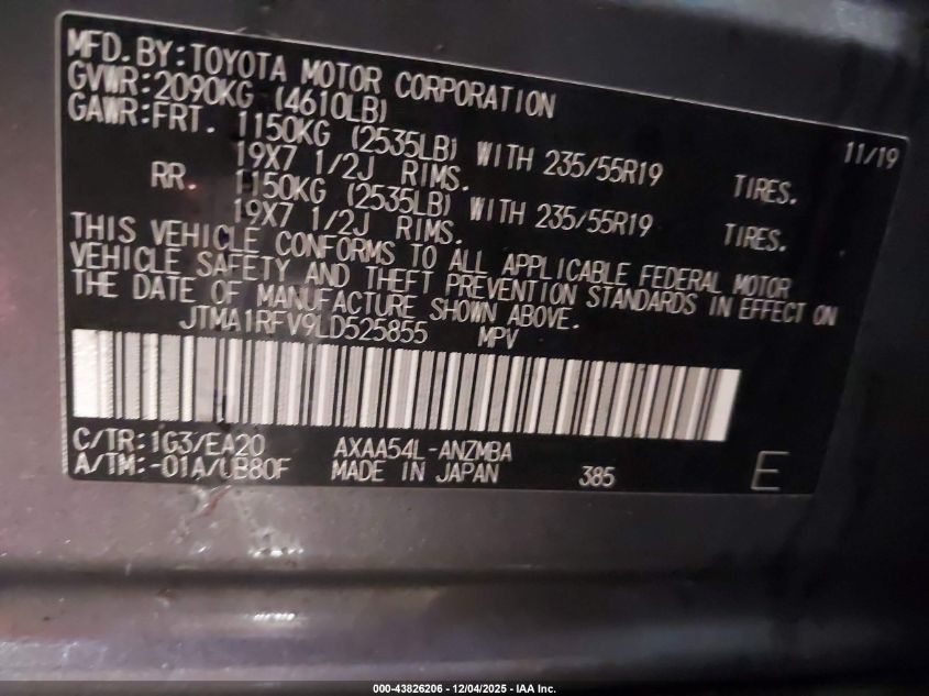 2020 TOYOTA RAV4 2020 року Бензин, 2.5, Полный привод, vin - JTMA1RFV9LD525855 из США