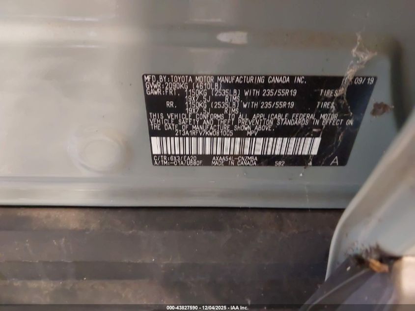 2019 TOYOTA RAV4 2019 року Бензин, 2.5, Полный привод, vin - 2T3A1RFV7KW081005 из США