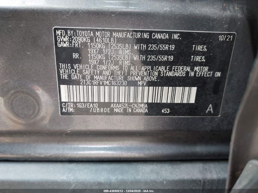 2021 TOYOTA RAV4 2021 року Бензин, 2.5, Передний привод, vin - 2T3C1RFV1MC163230 из США