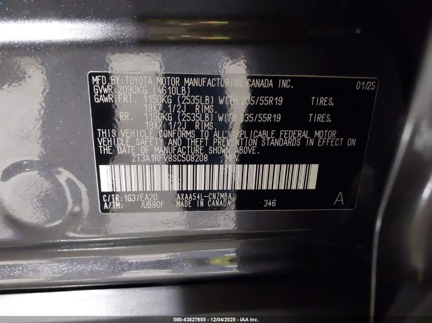 2025 TOYOTA RAV4 2025 року Бензин, 2.5, Полный привод, vin - 2T3A1RFV8SC508208 из США