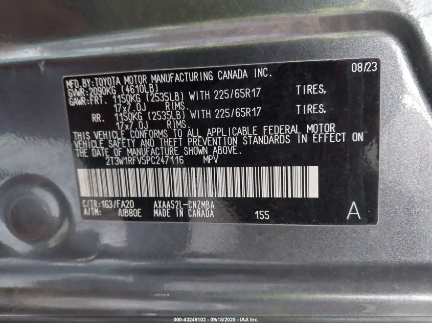 2023 TOYOTA RAV4 2023 року Бензин, 2.5, Передний привод, vin - 2T3W1RFV5PC247116 из США