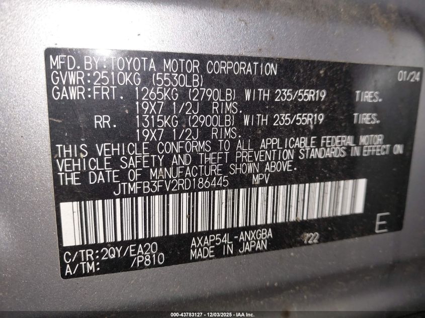 2024 TOYOTA RAV4 2024 року Гибрид, 2.5, Полный привод, vin - JTMFB3FV2RD186445 из США