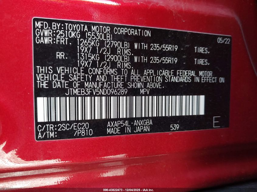 Цвет КрасныйЦилиндры 4Привод Полный приводVIN JTMEB3FV5ND096289Состояние СтационарноПовреждения Передняя или задняя AutoRIA