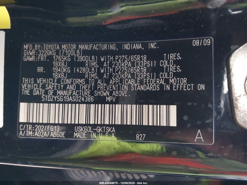 2010 TOYOTA SEQUOIA 2010 року Бензин, 5.7, , vin - 5TDZY5G19AS024386 из США