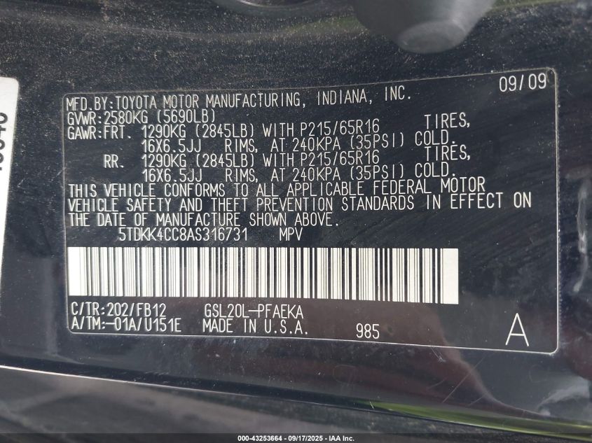 Цвет ЧерныйЦилиндры 6Привод Передний приводVIN 5TDKK4CC8AS316731Состояние Заводится и едет (проверено)Повреждения Правая сторона AutoRIA