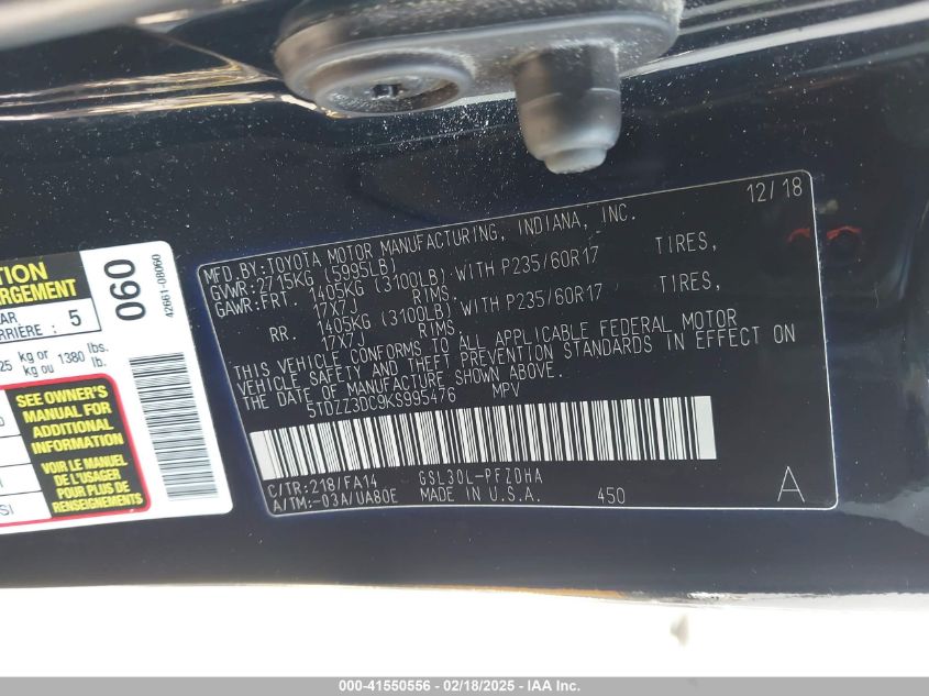 2019 TOYOTA SIENNA