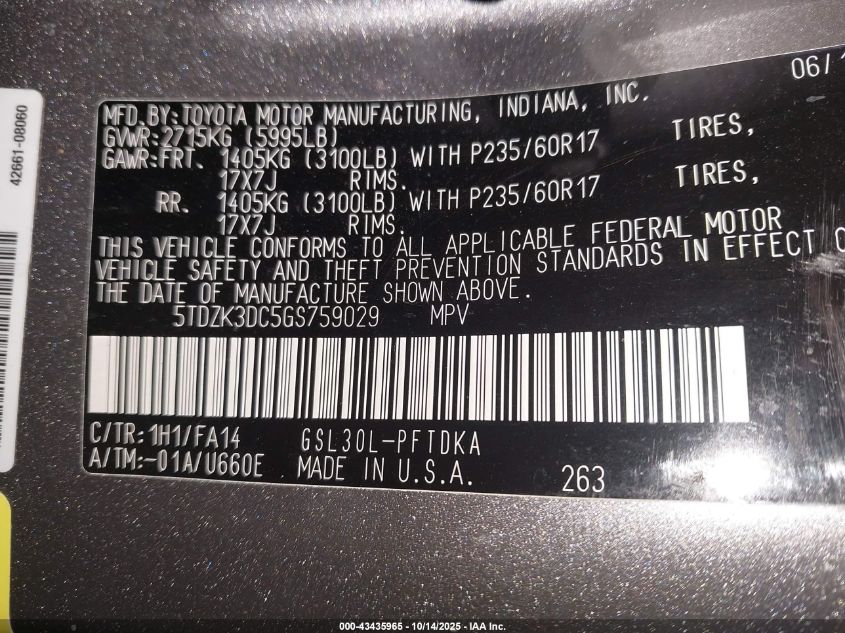 Цвет СерыйЦилиндры 6Привод Передний приводVIN 5TDZK3DC5GS759029Состояние СтационарноПовреждения Передняя или задняя AutoRIA
