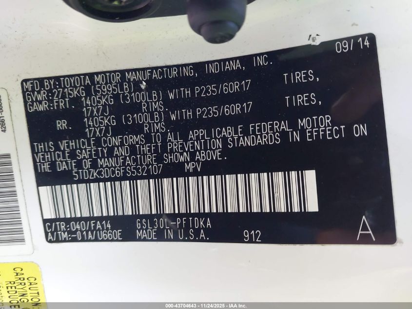 2015 TOYOTA SIENNA