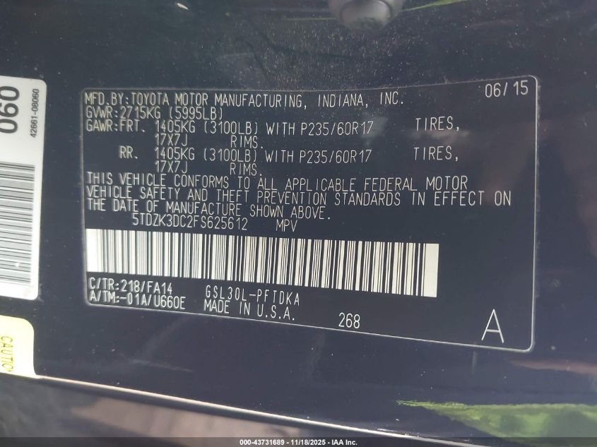 2015 TOYOTA SIENNA