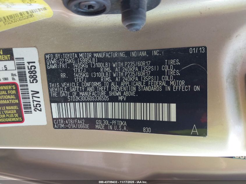 Цвет ШампаньЦилиндры 6Привод Передний приводVIN 5TDZK3DC6DS336505Состояние Заводится и едет (проверено)Повреждения Передняя или задняя AutoRIA