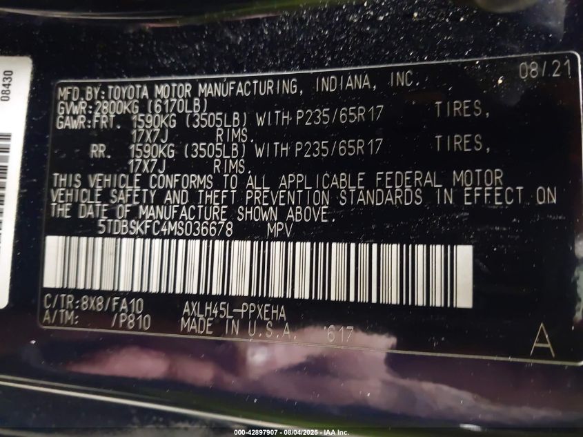2021 TOYOTA SIENNA LIMITED