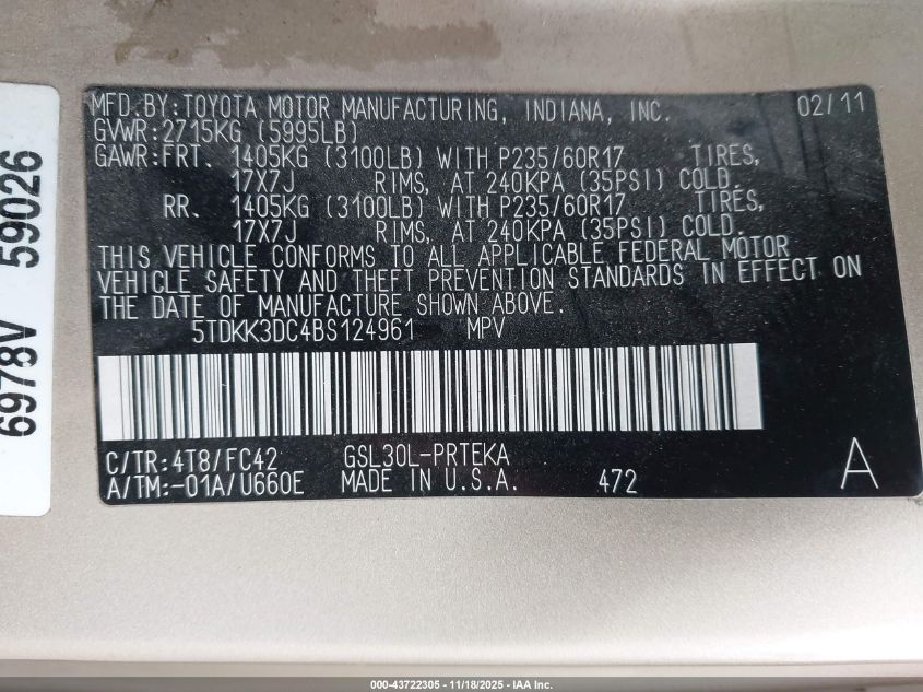 Цвет ЗолотойЦилиндры 6Привод Передний приводVIN 5TDKK3DC4BS124961Состояние Заводится и едет (проверено)Повреждения Передняя или задняя AutoRIA