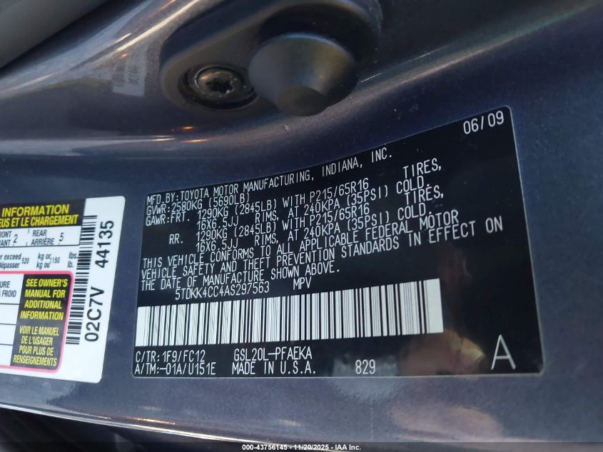 2010 TOYOTA SIENNA 2010 року Бензин, 3.5, Передний привод, vin - 5TDKK4CC4AS297563 из США