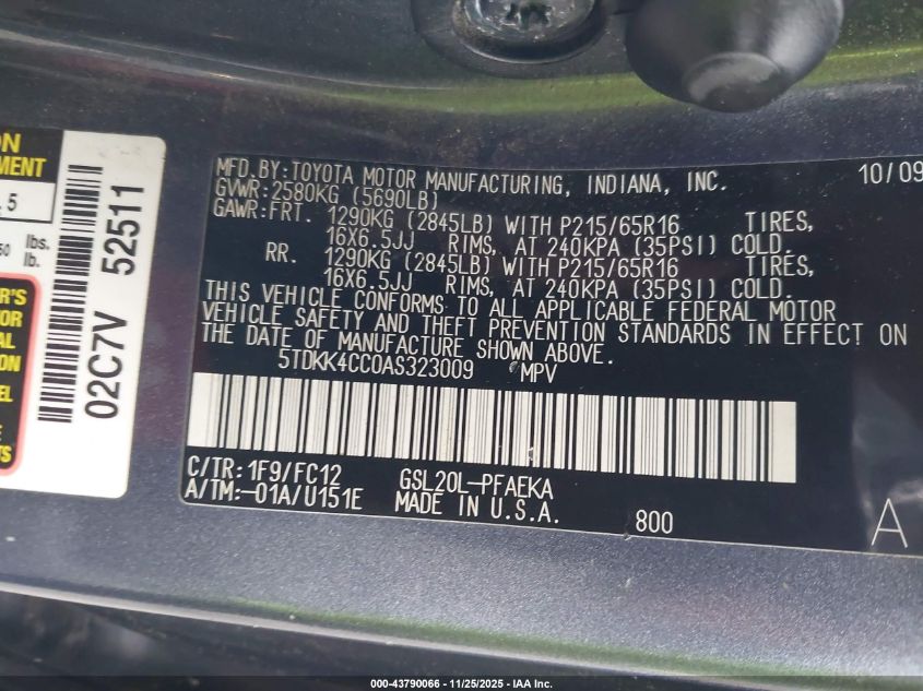 2010 TOYOTA SIENNA 2010 року Бензин, 3.5, Передний привод, vin - 5TDKK4CC0AS323009 из США