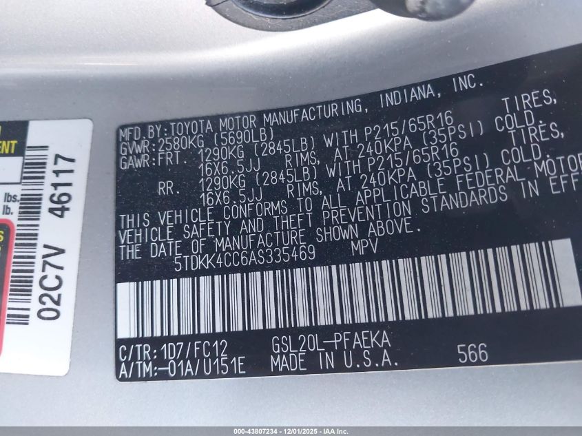 2010 TOYOTA SIENNA 2010 року Бензин, 3.5, Передний привод, vin - 5TDKK4CC6AS335469 из США