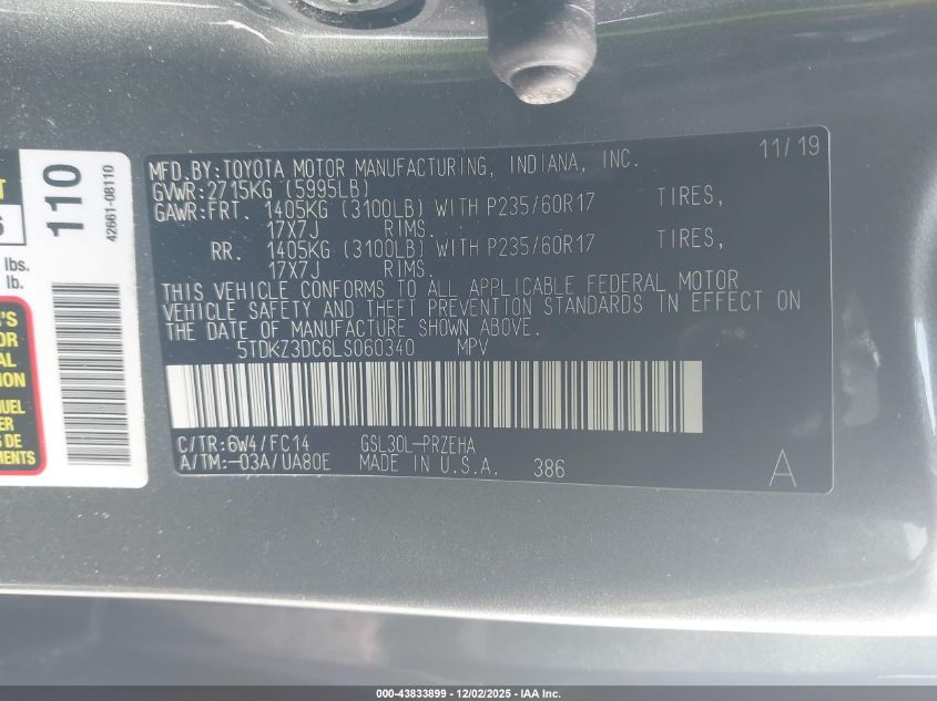 2020 TOYOTA SIENNA 2020 року Бензин, 3.5, Передний привод, vin - 5TDKZ3DC6LS060340 из США