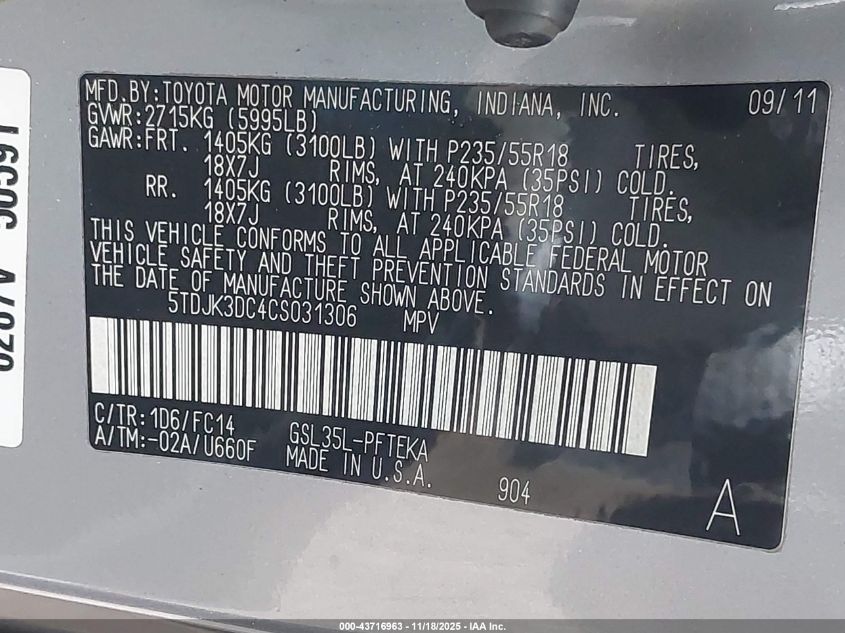 Цвет СерыйЦилиндры 6Привод Полный приводVIN 5TDJK3DC4CS031306Состояние Заводится и едет (проверено)Повреждения Правая сторонаДата аукциона 2025-12-08 AutoRIA