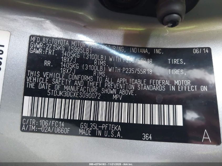 2014 TOYOTA SIENNA 2014 року Бензин, 3.5, Полный привод, vin - 5TDJK3DCXES090072 из США
