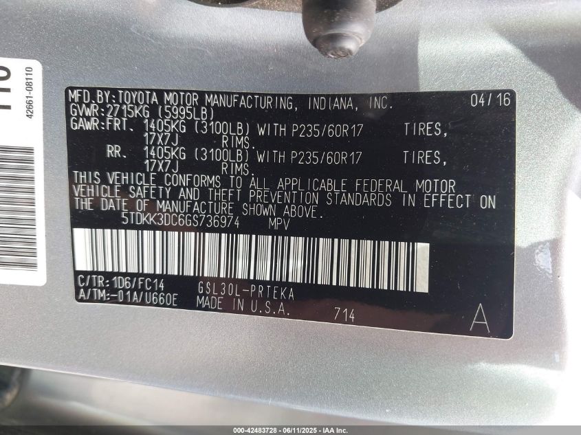 2016 TOYOTA SIENNA 2016 року Бензин, 3.5, Передний привод, vin - 5TDKK3DC6GS736974 из США