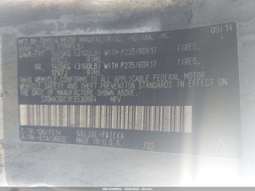 2015 TOYOTA SIENNA 2015 року Бензин, 3.5, Передний привод, vin - 5TDKK3DC1FS530864 из США
