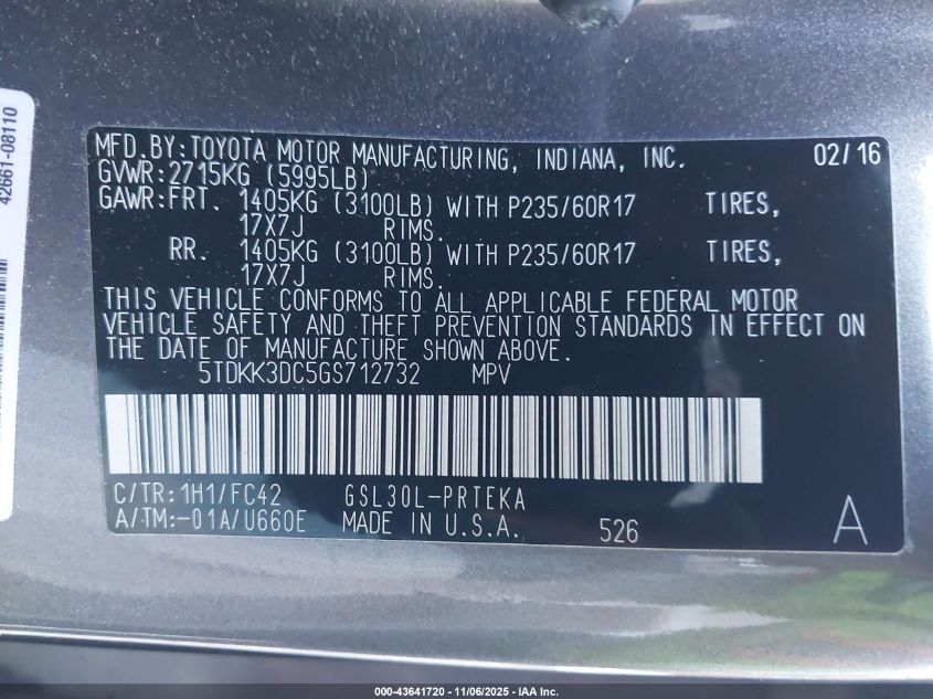 2016 TOYOTA SIENNA