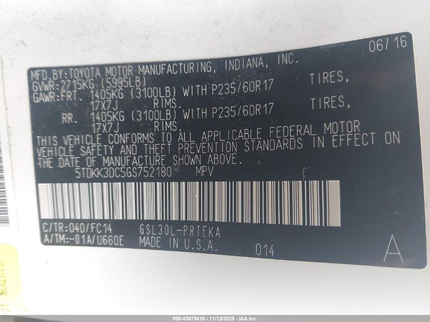 2016 TOYOTA SIENNA