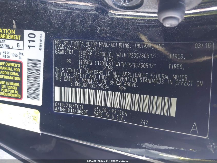 2016 TOYOTA SIENNA 2016 року Бензин, 3.5, Передний привод, vin - 5TDKK3DC6GS725084 из США