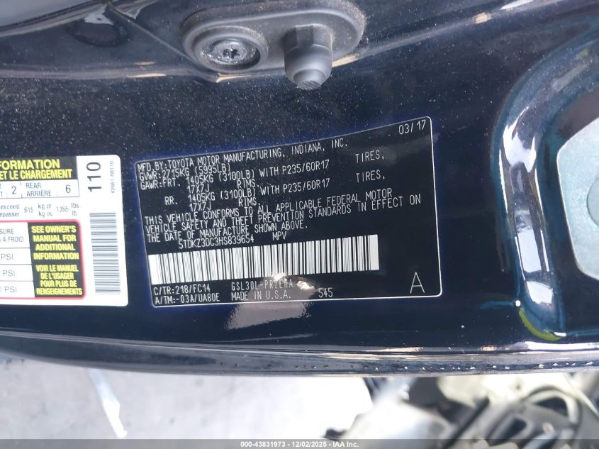 2017 TOYOTA SIENNA 2017 року Бензин, 3.5, Передний привод, vin - 5TDKZ3DC3HS839654 из США