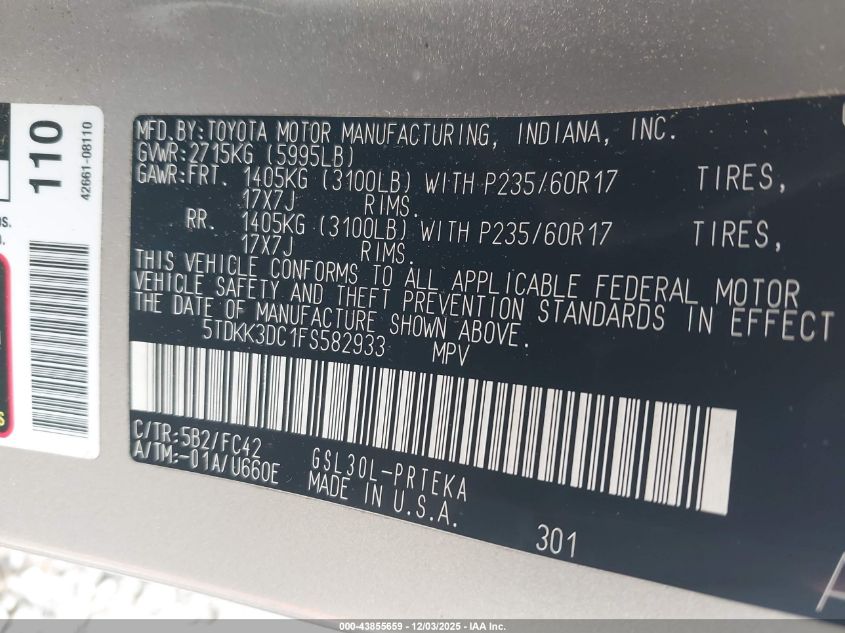 2015 TOYOTA SIENNA 2015 року Бензин, 3.5, Передний привод, vin - 5TDKK3DC1FS582933 из США