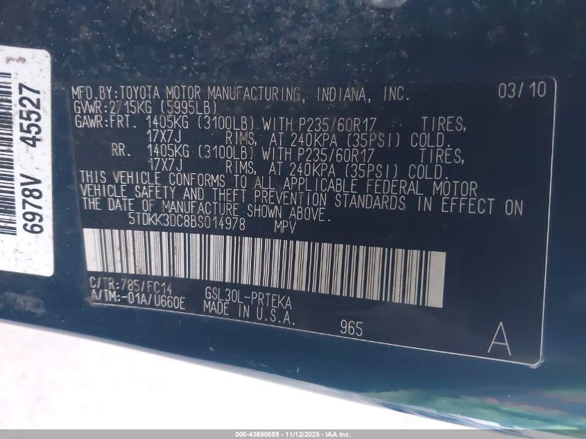Цвет СинийЦилиндры 6Привод Передний приводVIN 5TDKK3DC8BS014978Состояние Заводится и едет (проверено)Повреждения Левая сторонаДата аукциона 2025-12-08 AutoRIA