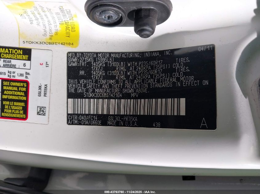 2011 TOYOTA SIENNA 2011 року Бензин, 3.5, Передний привод, vin - 5TDKK3DC6BS142104 из США