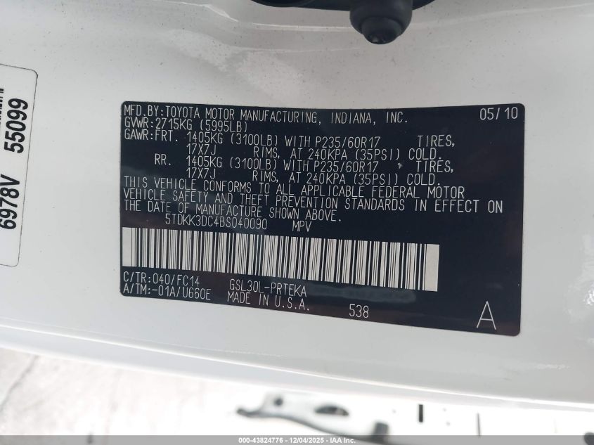 2011 TOYOTA SIENNA 2011 року Бензин, 3.5, Передний привод, vin - 5TDKK3DC4BS040090 из США