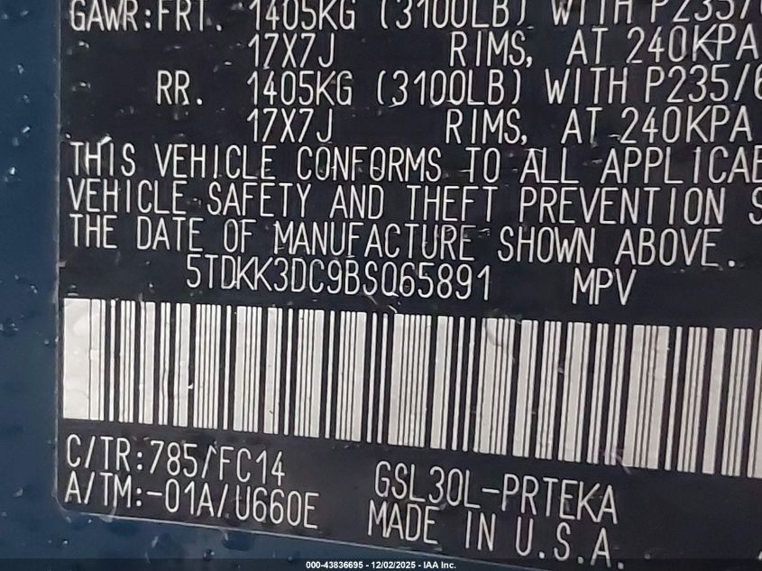 Цвет СинийЦилиндры 6Привод Передний приводVIN 5TDKK3DC9BS065891Состояние Заводится и едет (проверено)Повреждения По бокам AutoRIA