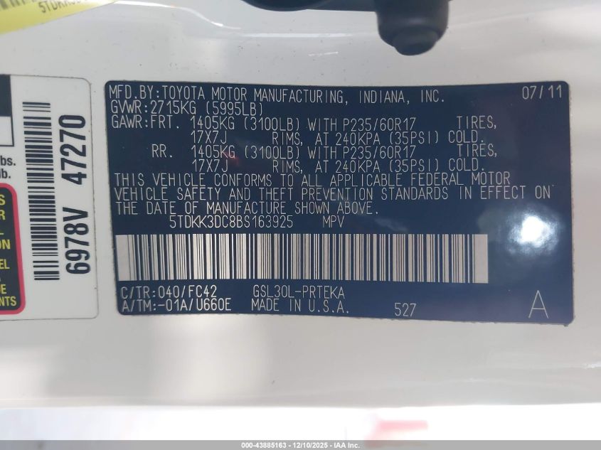 Цвет БелыйЦилиндры 6Привод Передний приводVIN 5TDKK3DC8BS163925Состояние Заводится и едет (проверено)Повреждения Передняя или задняя AutoRIA