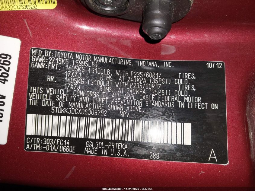 2013 TOYOTA SIENNA SPORT