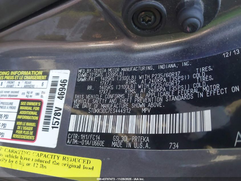 2014 TOYOTA SIENNA 2014 року Бензин, 3.5, Передний привод, vin - 5TDKK3DC7ES444912 из США