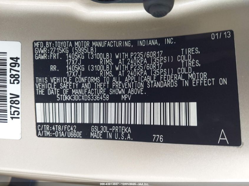 2013 TOYOTA SIENNA 2013 року Бензин, 3.5, Передний привод, vin - 5TDKK3DCXDS336458 из США