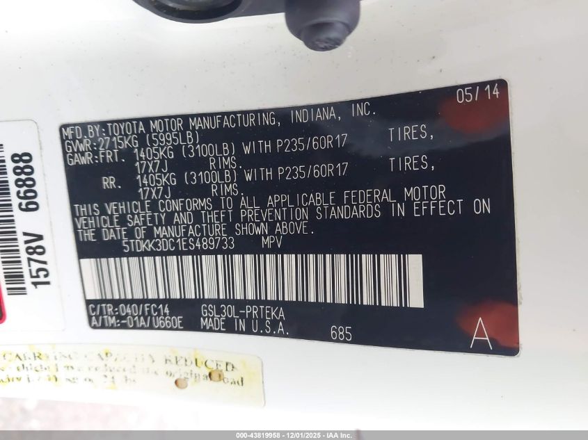 2014 TOYOTA SIENNA 2014 року Бензин, 3.5, Передний привод, vin - 5TDKK3DC1ES489733 из США