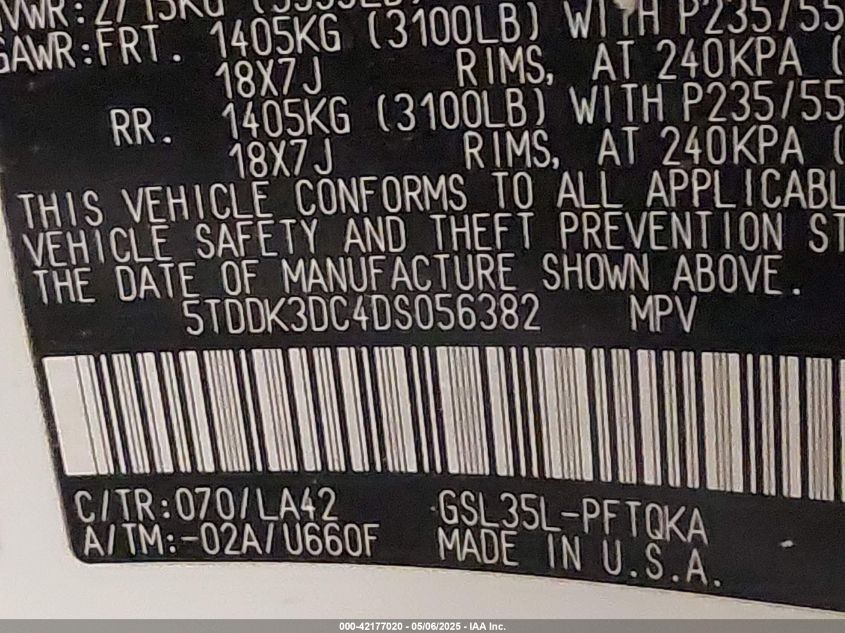 Цвет БелыйЦилиндры 6Привод Полный приводVIN 5TDDK3DC4DS056382Состояние СтационарноПовреждения Передняя или задняяДата аукциона 2025-12-11 AutoRIA