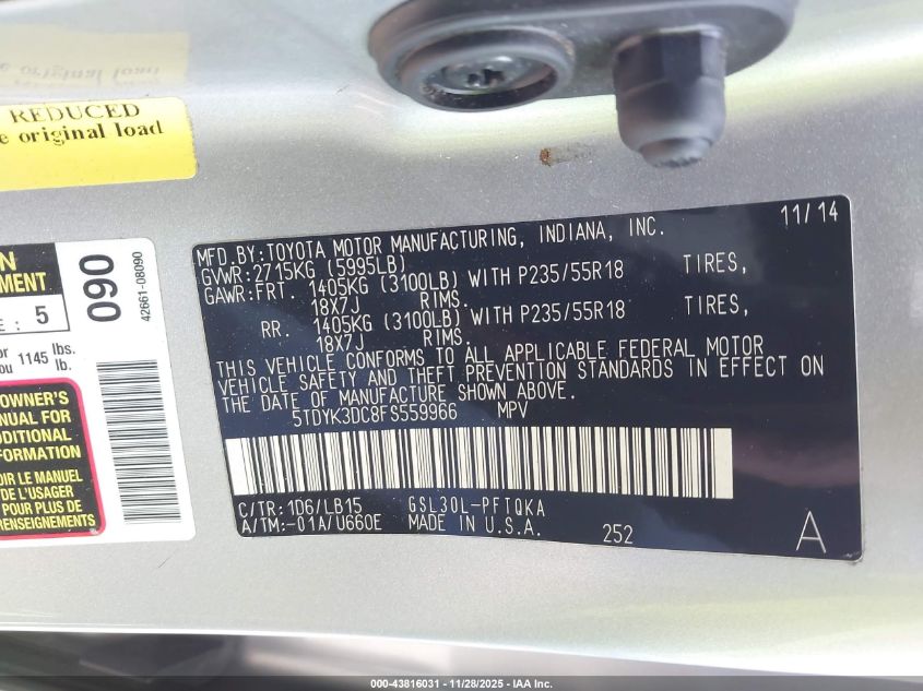Цвет СеребряныйЦилиндры 6Привод Передний приводVIN 5TDYK3DC8FS559966Состояние Заводится и едет (проверено)Повреждения Задняя правая AutoRIA