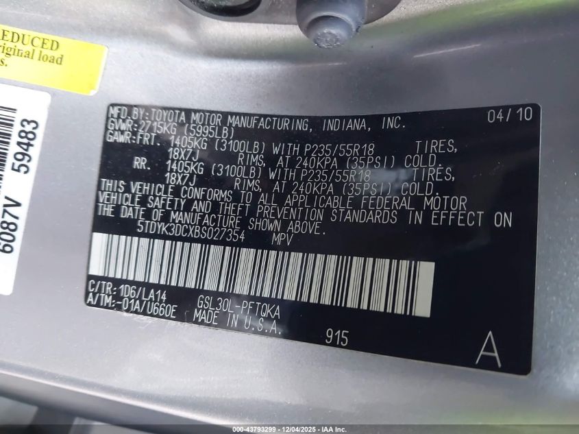 Цвет СерыйЦилиндры 6Привод Передний приводVIN 5TDYK3DCXBS027354Состояние СтационарноПовреждения Передняя или задняя AutoRIA