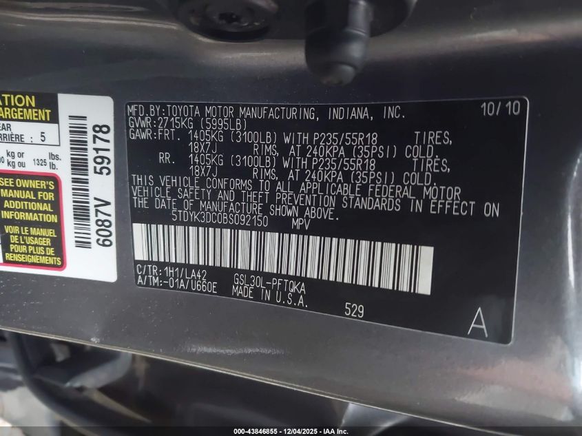 Цвет СерыйЦилиндры 6Привод Передний приводVIN 5TDYK3DC0BS092150Состояние СтационарноПовреждения Передняя левая AutoRIA